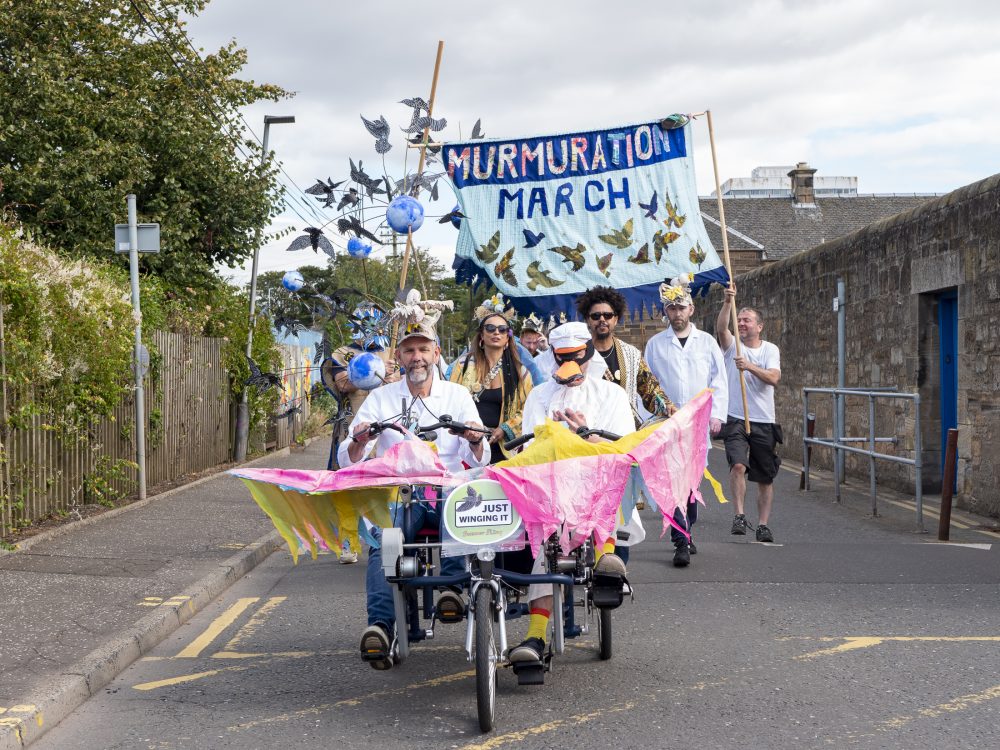 The Murmuration March was accompanied by rhythmic drumming of Omar Afif and interspersed with amazing poetry of Simon Porter which formed linking moments along the route.
